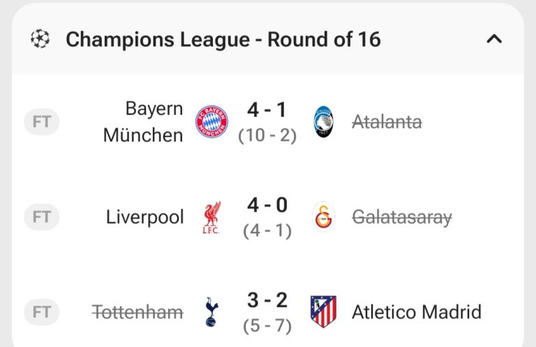 अब लिभरपुलले क्वार्टरफाइनलमा साविक विजेता पेरिस सेन्ट जर्मेनसँग खेल्नेछ। यसपटक प्रिमियर लिग टोली लिभरपुल र आर्सनल मात्र क्वार्टरफाइनल पुग्न सफल रहे।