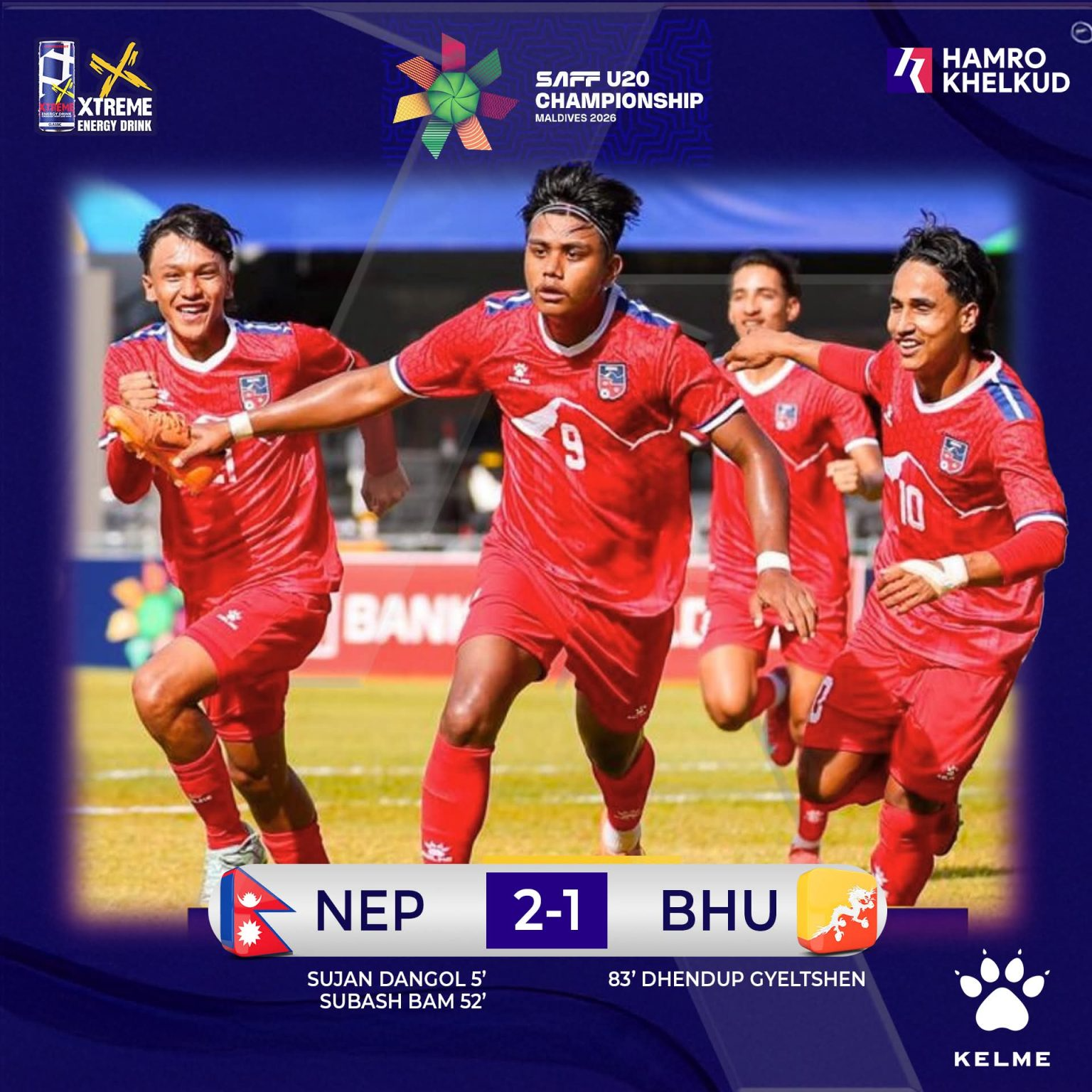 साफ यु-२० मा नेपालको रोमाञ्चक जित : २-१ ले भुटानलाई हराउँदा सबैको मन जितियो